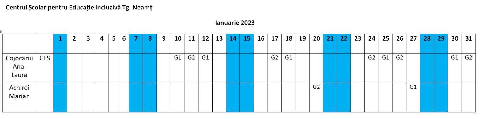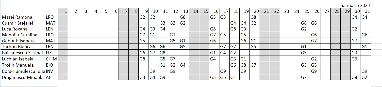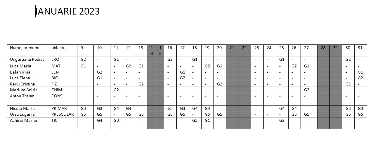 PLANIFICAREA ACTIVITĂȚILOR PENTRU LUNA IANUARIE 2023