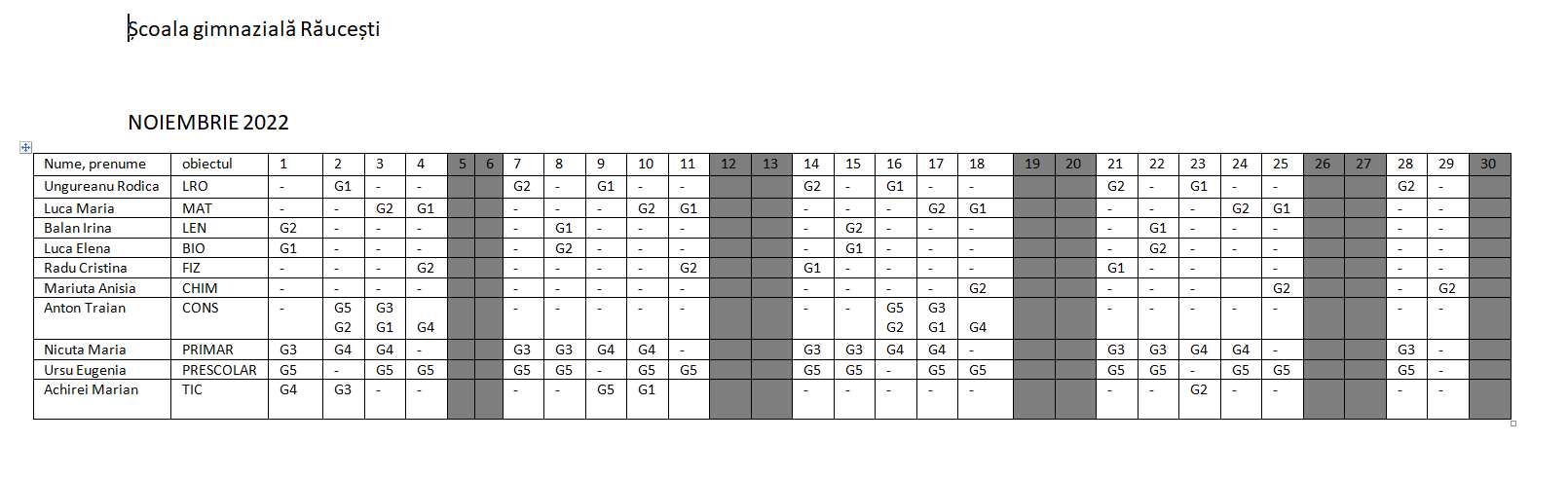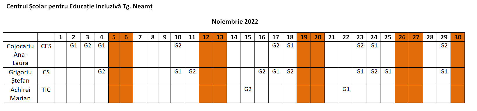 PLANIFICAREA ACTIVITĂȚILOR PENTRU LUNA NOIEMBRIE 2022