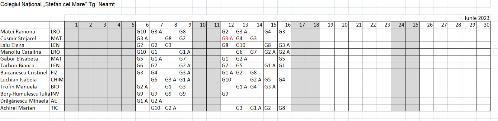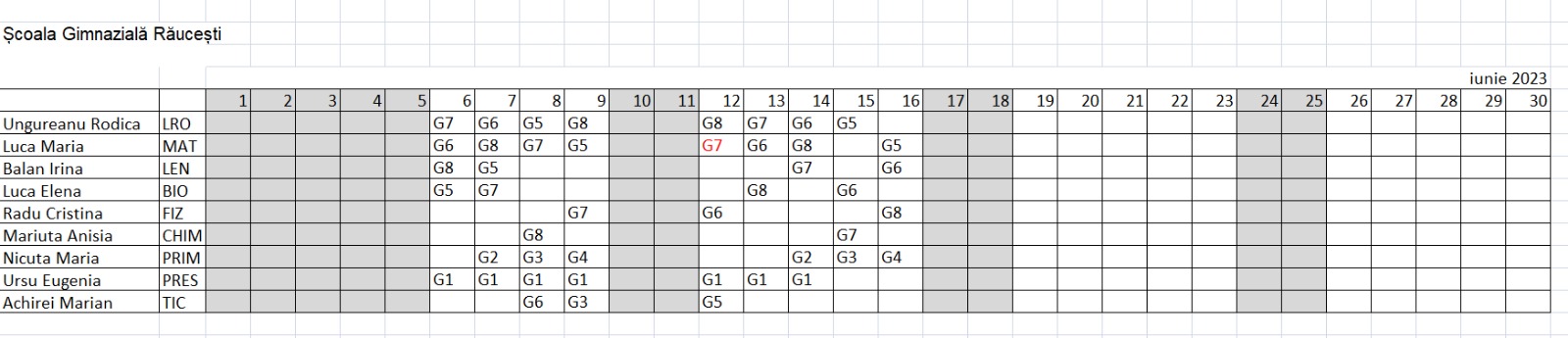 PLANIFICAREA ACTIVITATILOR PENTRU LUNA IUNIE 2023